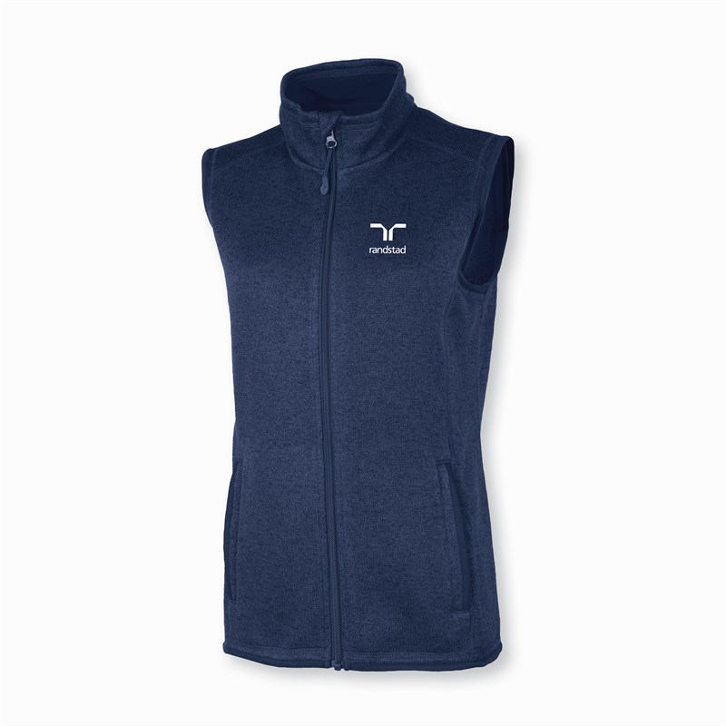 The Women's Pacific Vest delivers lightweight insulation with a feminine silhouette. Made with heathered fleece for a textured, premium feel. Ideal for layering or stand-alone wear. Embroidered with the Randstad Stacked Logo, it promotes subtle corporate branding.